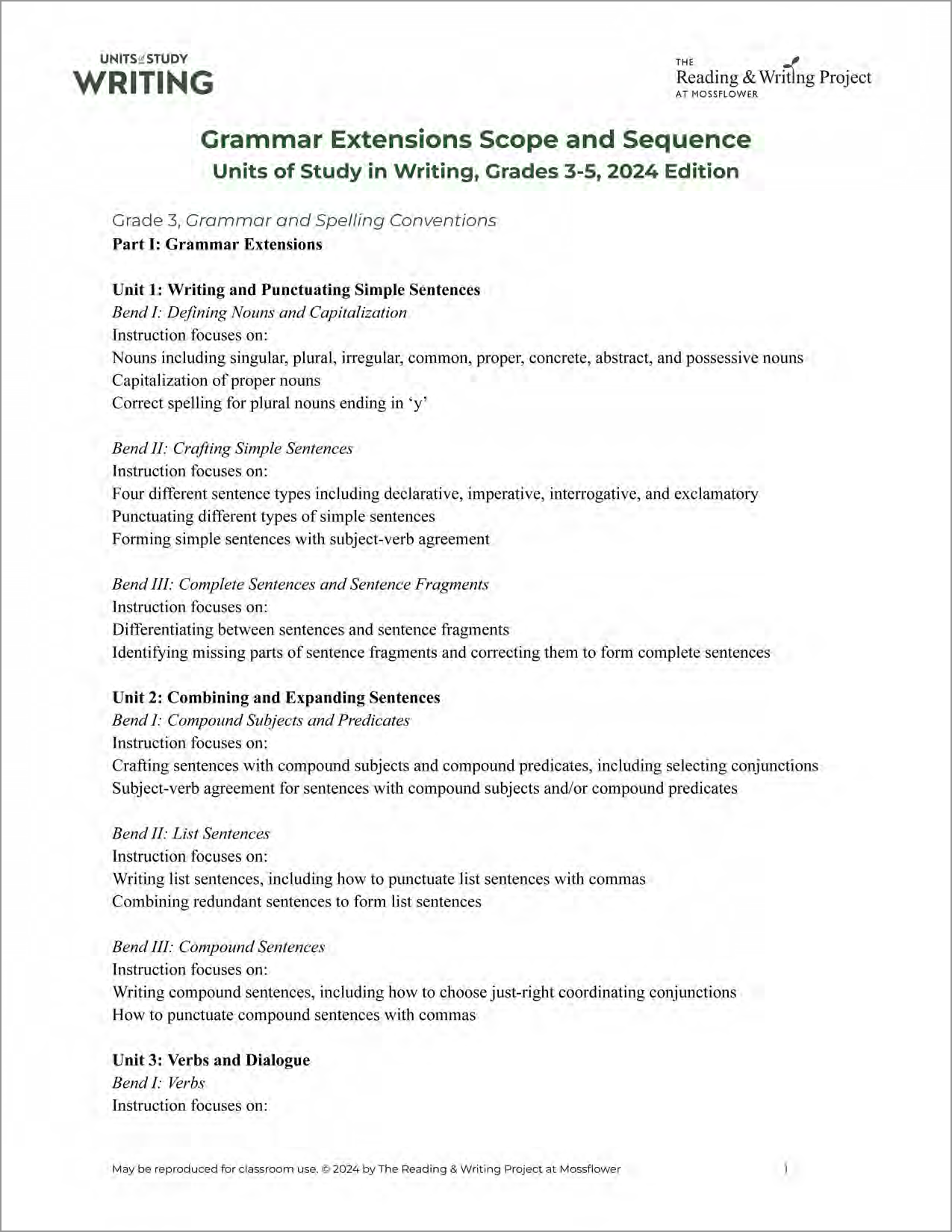 - Grades 3–5 include grade-specific grammar lessons. Instruction is sequenced so that students can apply the lessons they learn to their ongoing writing.