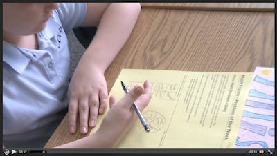 Stream the video of Max presenting the Arm-Wrestling Contest PoW to a different 3rd grade class. He is using the "What Do You Hear?" activity from p. 46 of Powerful Problem Solving.