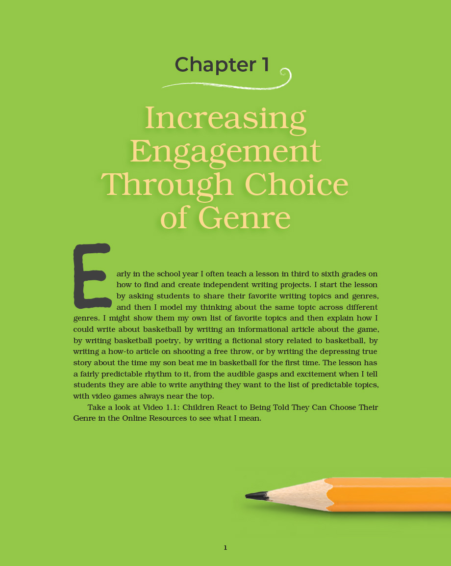 “Matt has long been a passionate advocate for student choice, and in this book he shows teachers how to put choice at the center of all their planning and decision making. What a gift to be able to learn from Matt’s years of experience doing this work in so many different classrooms. There’s no question you will think so much more expansively about the teaching of writing after reading this book. If you’ve ever felt like your students were boxed-in by the narrow confines of genre study after genre study, you’ll find so many possibilities for breaking out of that box and supporting student writers with smart, bold studies that lift the level of their work in genres they have chosen for themselves.”—Katie Wood Ray