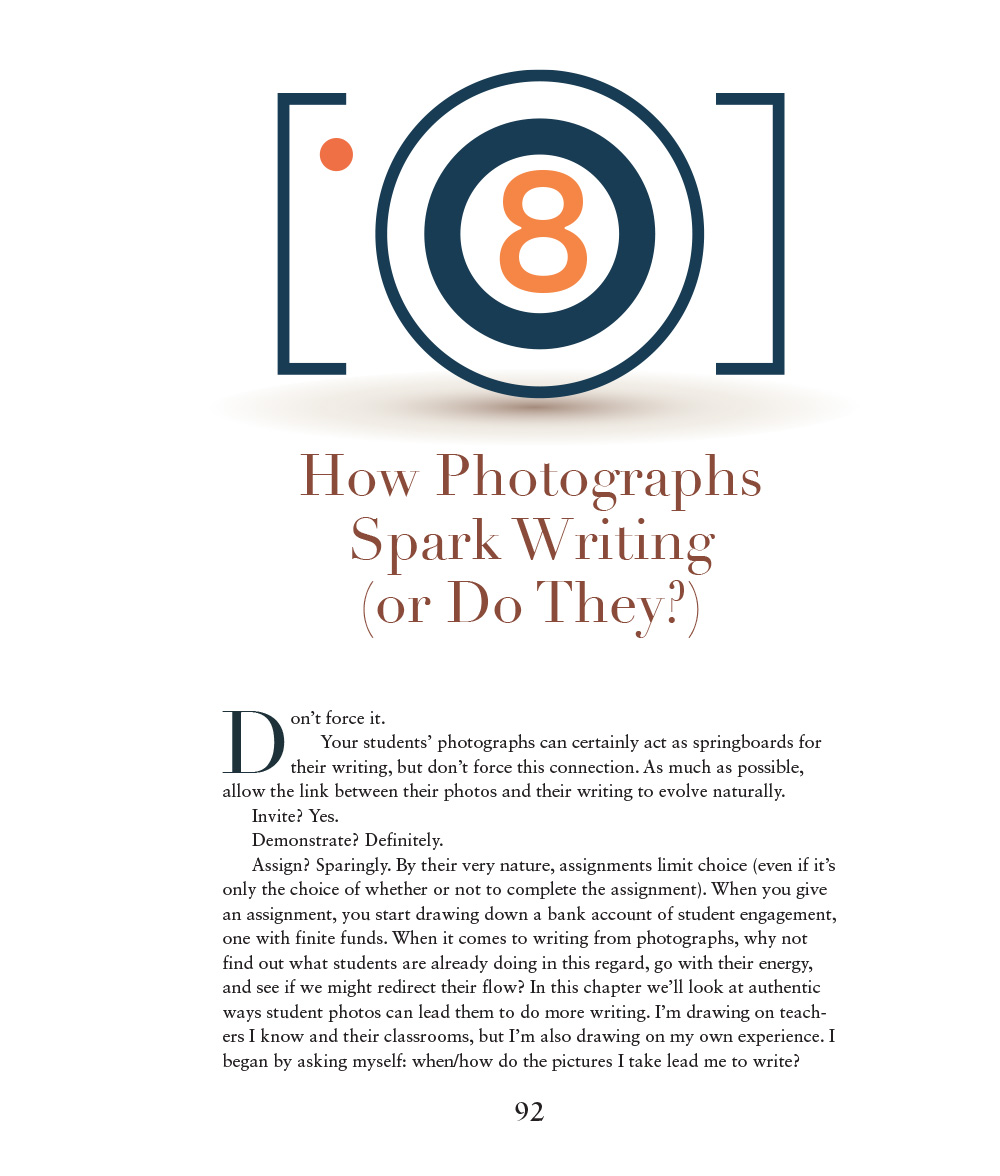 We teach our students to write using words and sentences that create a desired effect. You might encourage them to zoom in on a small moment, focus on a specific detail, or experiment with a new point of view. The language of writing has a natural link with photography.