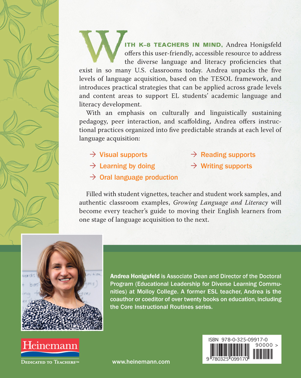 With K-8 teachers in mind, Andrea Honigsfeld offers this user-friendly, accessible resource to address the diverse language and literacy proficiencies that exist in so many U.S. classrooms today. Andrea unpacks the five levels of language acquisition, based on the TESOL framework, and introduces practical strategies that can be applied across grade levels and content areas to support EL students’ academic language and literacy development.