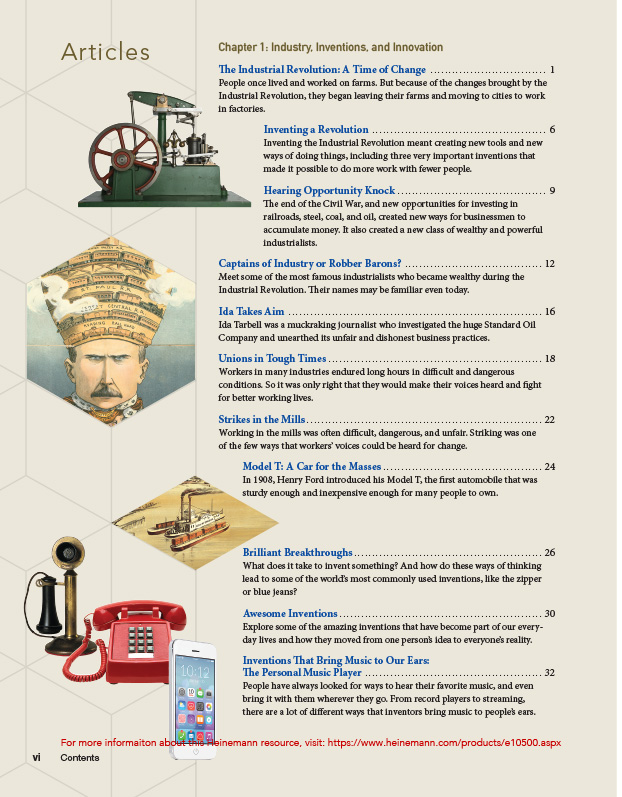 Industrial Age and Immigration is the latest volume in the Short Nonfiction for American History Toolkit Texts, part of The Comprehension Toolkit series. This resource highlights multiple perspectives and diverse voices of this historical time period. The last section, from the 1960s on, includes articles illustrating present-day perspectives, events, and issues surrounding immigration and innovation.