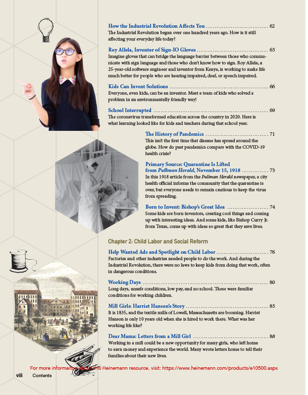 Kids need engaging texts and resources they can sink their teeth into, and they need and deserve to hear their stories told in history texts. Industrial Age and Immigration (1880–1940) highlights multiple perspectives and diverse voices of this historical time period. The last section of this resource, from the 1960s on, includes articles illustrating present-day perspectives, events, and issues surrounding immigration and innovation.