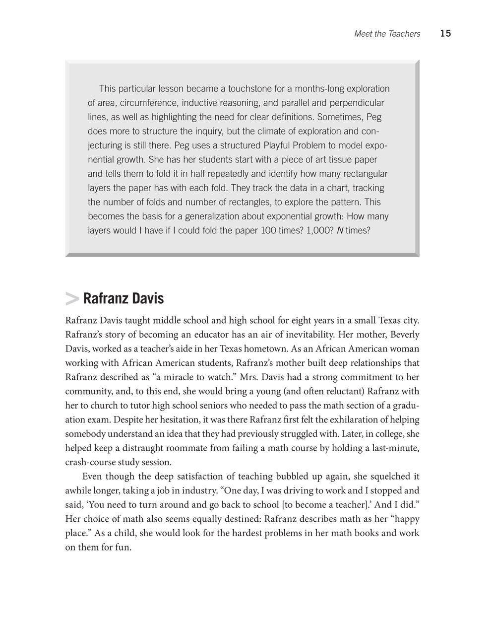 She introduces six different math teachers, in a range of school settings, who found that motivation requires more than an interesting problem. Their experiences highlight five factors that lower the risks and raise the benefits of participation: