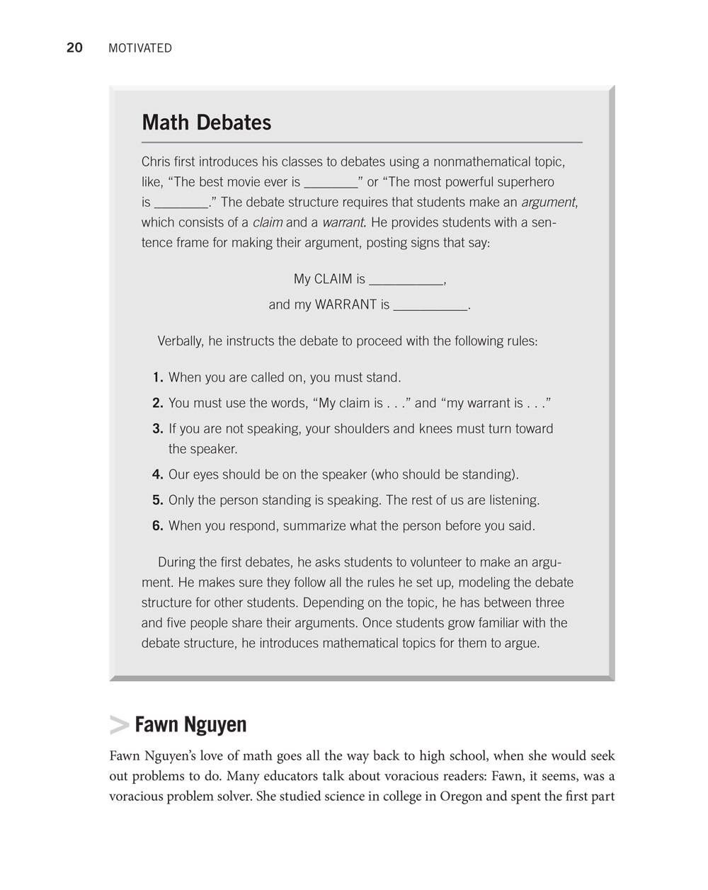 Participating in math class feels socially risky to students. Staying silent often feels safer. Motivated shows why certain teaching strategies create classroom climates where students want to join in. This book explores the key factors of motivational math classrooms along with strategies for weaving each one into your instruction.