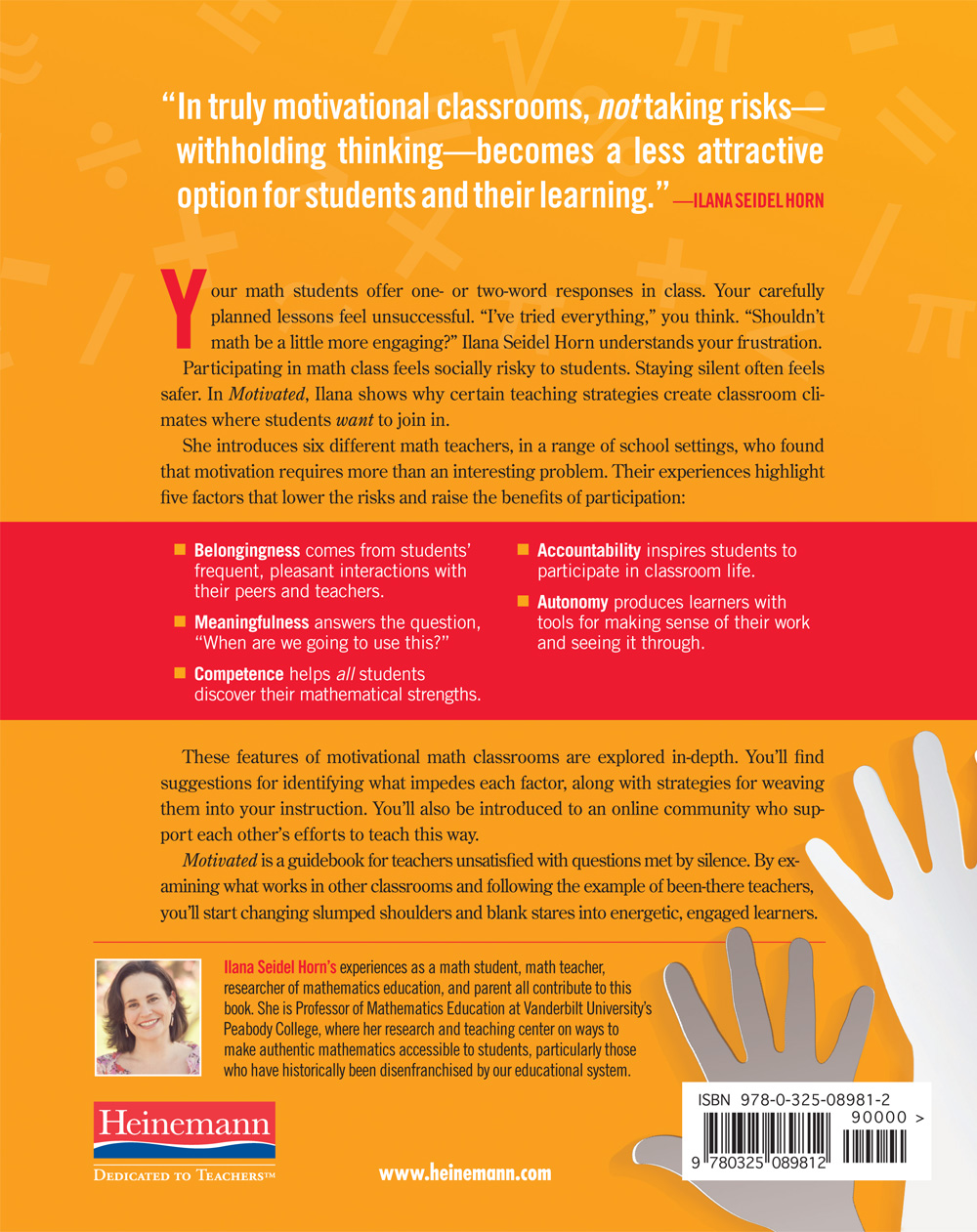 Participating in math class feels socially risky to students. Staying silent often feels safer. In Motivated, Ilana shows why certain teaching strategies create classroom climates where students want to join in.