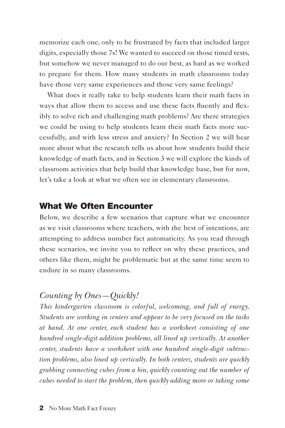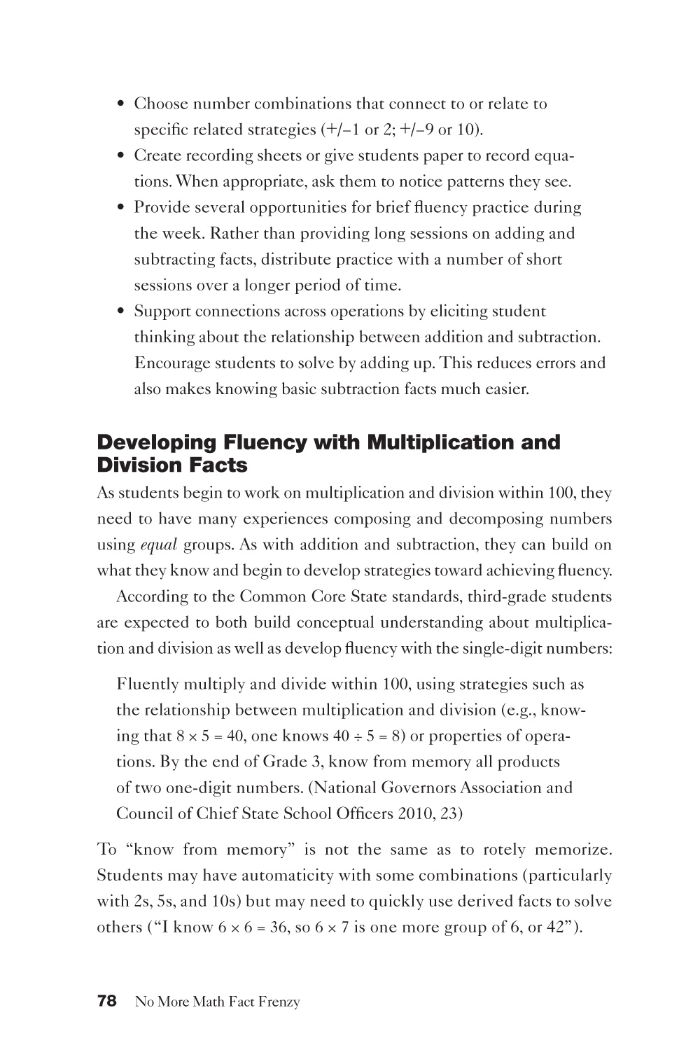 No More Math Fact Frenzy addresses this by examining current research about how to effectively build students' math fact knowledge. The authors then share a new set of best-practices: classroom activities that build students’ number sense and strategies that lead to flexible thinking.