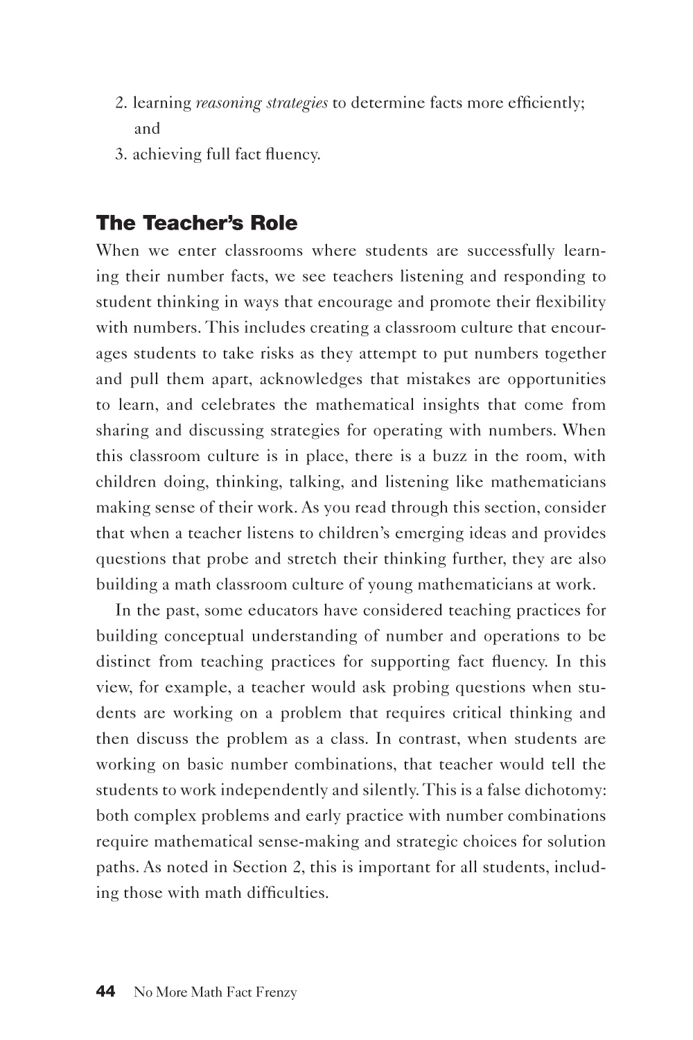 "When we emphasize foundation concepts and reasoning strategies as the path towards building authentic fluency, students can develop their number sense, articulate their thinking, and understand the reasoning of others."