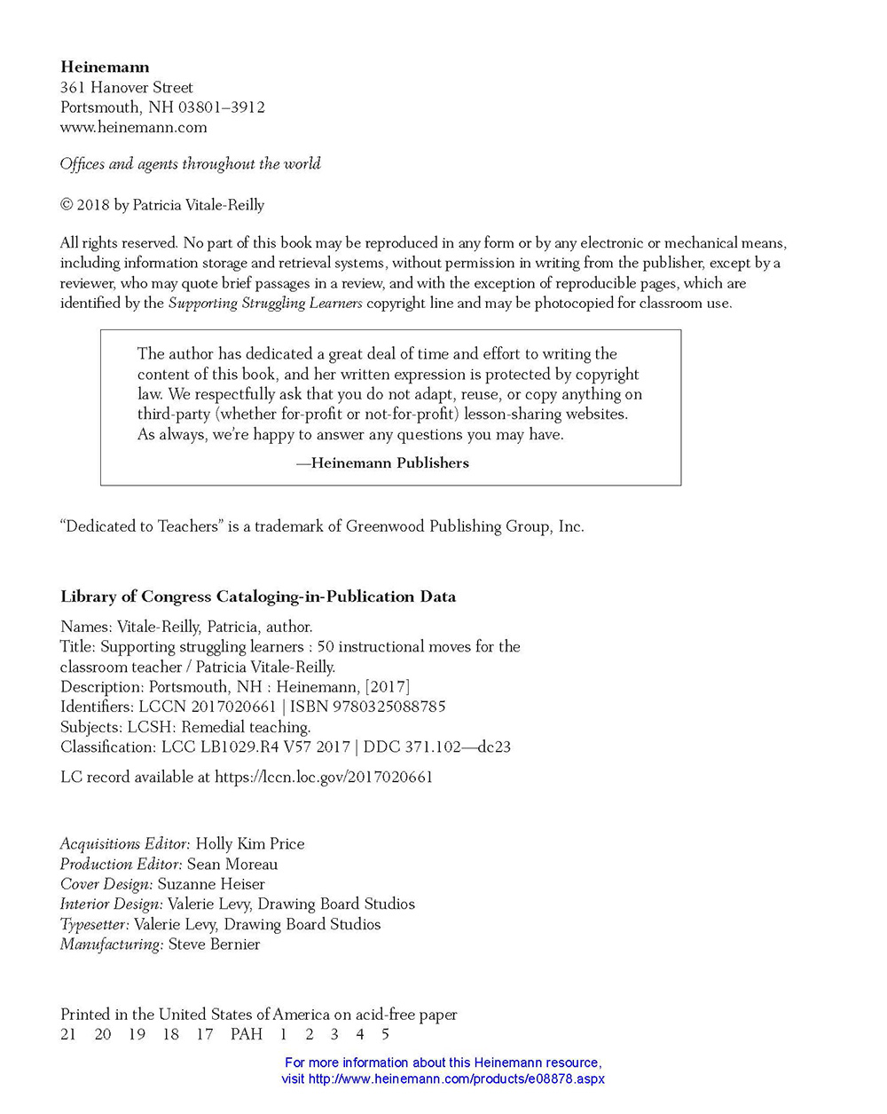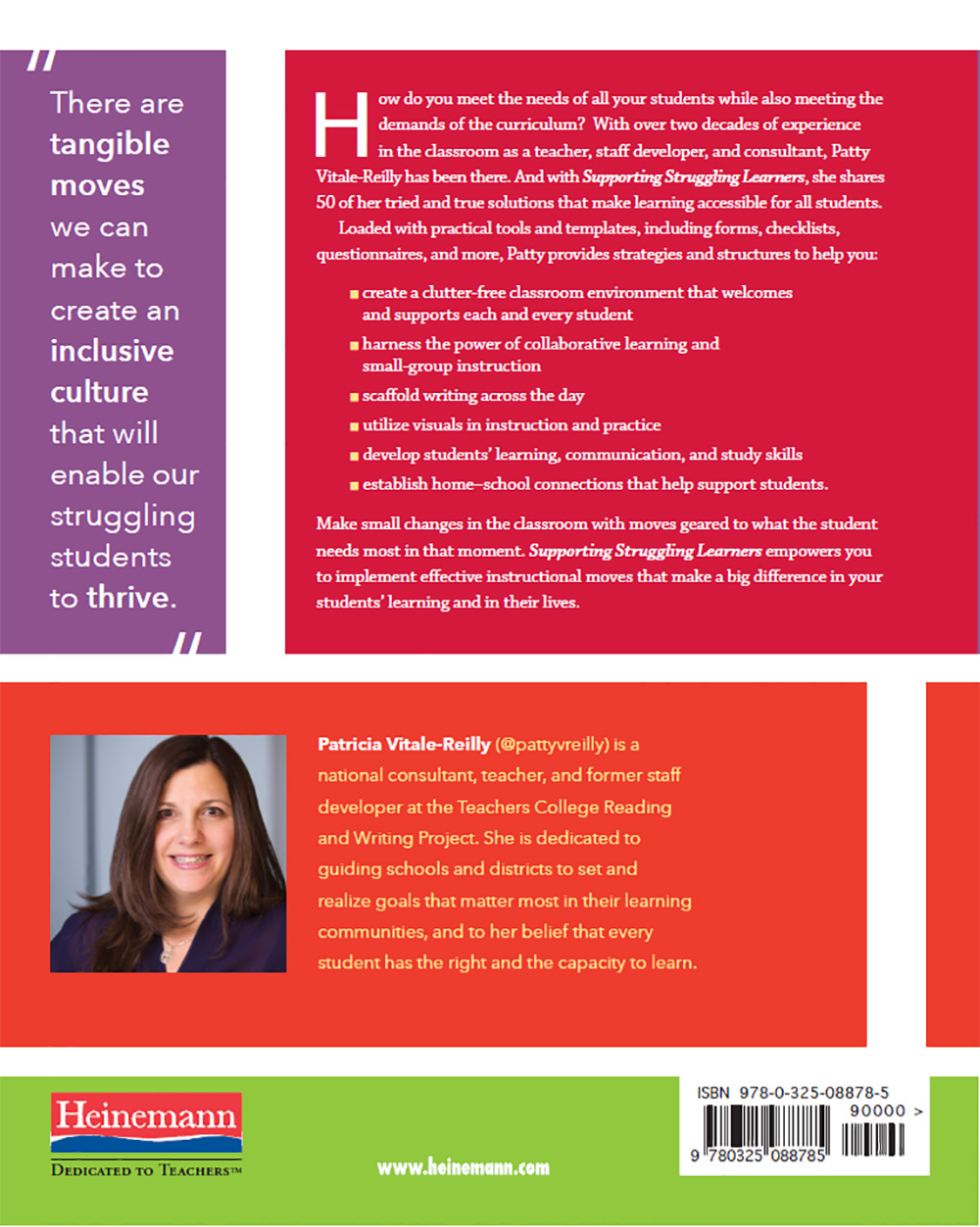 As teachers, how do you meet the needs of all your students while also meeting the demands of the curriculum?  With over two decades of experience in the classroom as a teacher, staff developer, and national consultant, Patty Vitale-Reilly has been there. And with Supporting Struggling Learners, she shares 50 of her tried and true solutions that make learning accessible for all students.