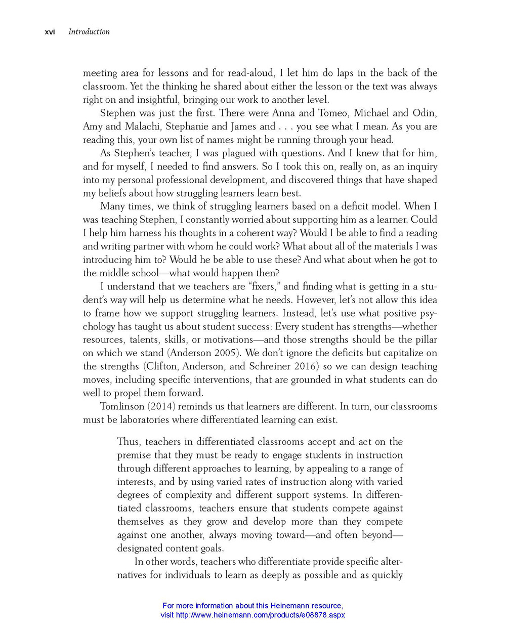 Make small changes in the classroom with moves geared to what the student needs most in that moment. Supporting Struggling Learners empowers you to implement effective instructional moves that make a big difference in your students’ learning and in their lives.