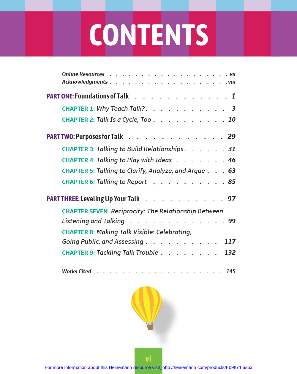 They offer a clear description of each purpose, the “when and how” to teach into those purposes, and what to do when things go awry. Classroom video brings the content to life showing what the talk looks and sounds like in action.